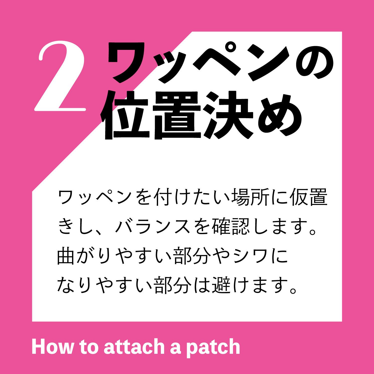 ワッペンを付けたい場所に仮置きし、バランスを確認します。